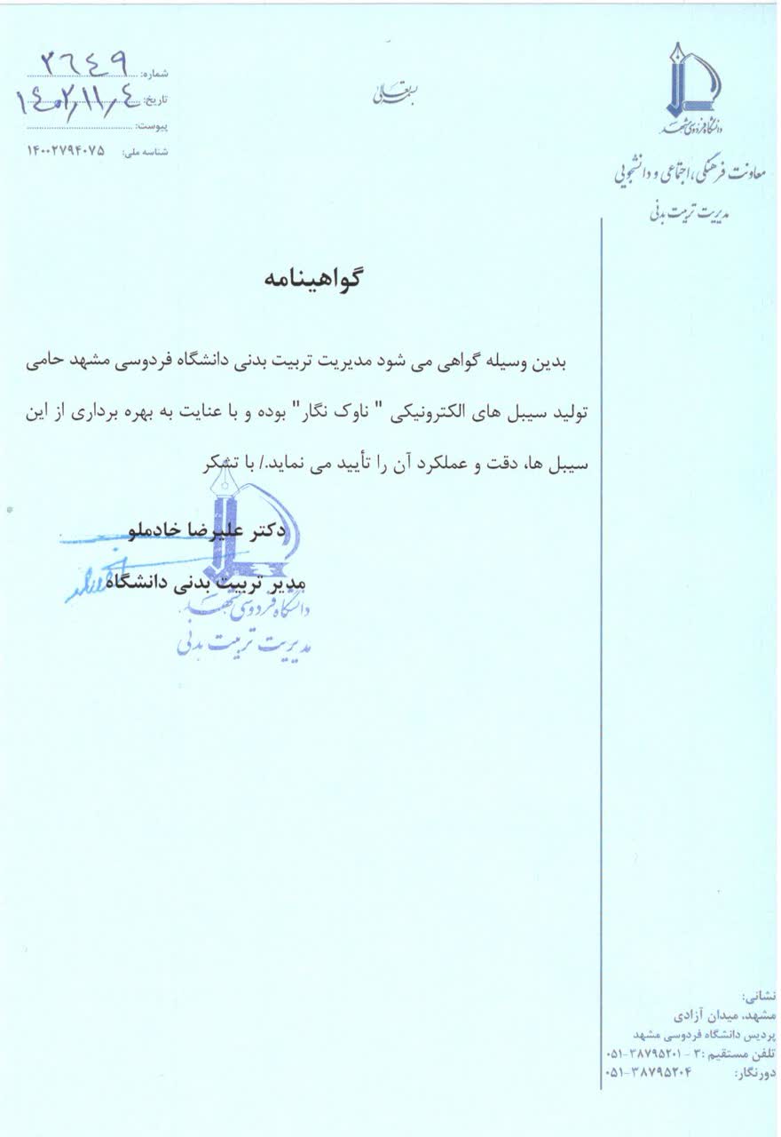 گواهینامه تاییدیه مدیریت تربیت بدنی دانشگاه فردوسی مشهد