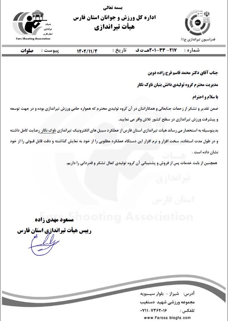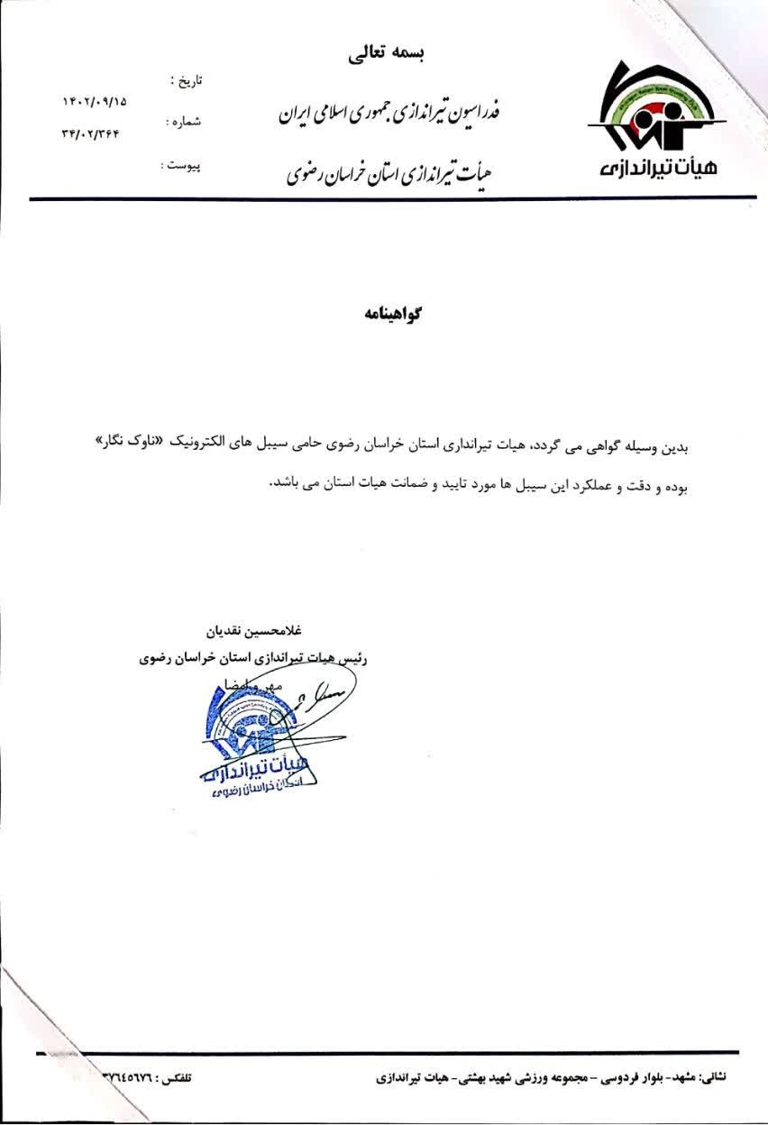 تاییدیه دایره تربیت بدنی منطقه پدافند هوایی شمال شرق امام رضا(ع)